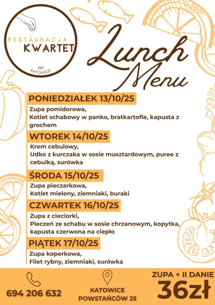 LUNCH MENU 13.10-17.10 utworzone przez admin | paź 12, 2025 | Food | 0 komentarzy Prześlij komentarz Anuluj pisanie odpowiedziTwój adres e-mail nie zostanie opublikowany. Wymagane pola są oznaczone *Komentarz Nazwa * Email * Witryna internetowa Zapisz moje dane, adres e-mail i witrynę w przeglądarce aby wypełnić dane podczas pisania kolejnych komentarzy.