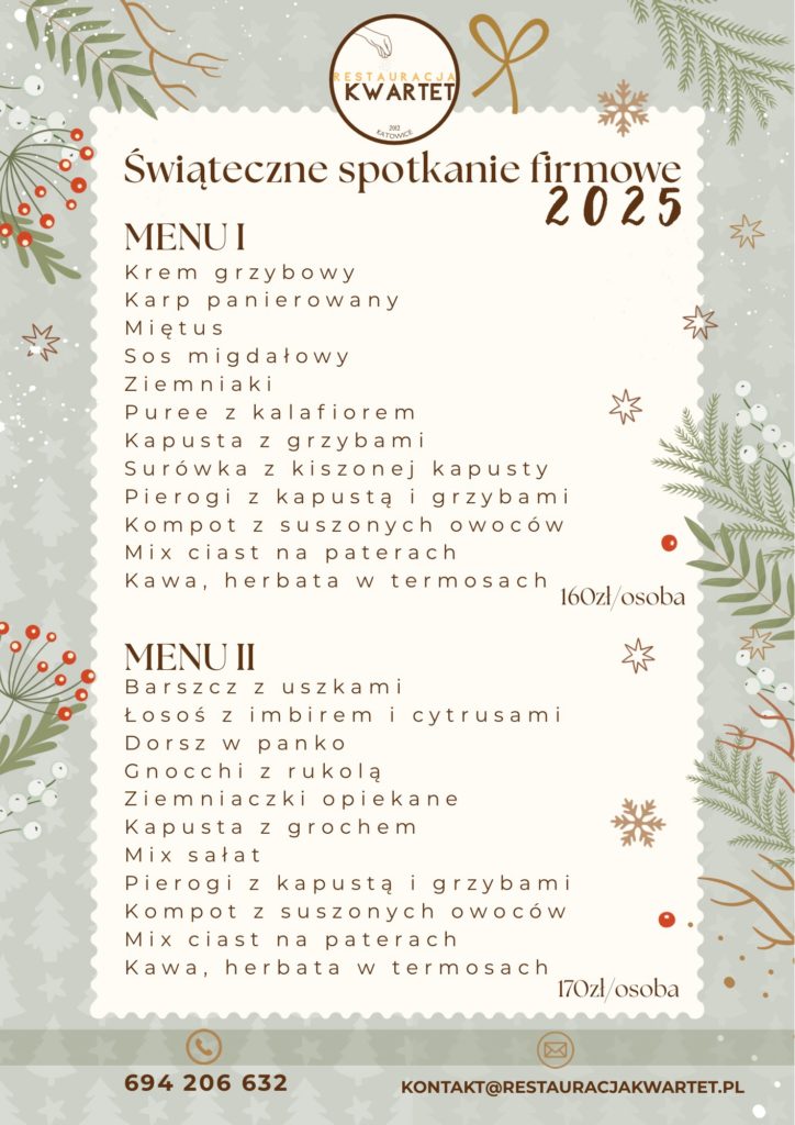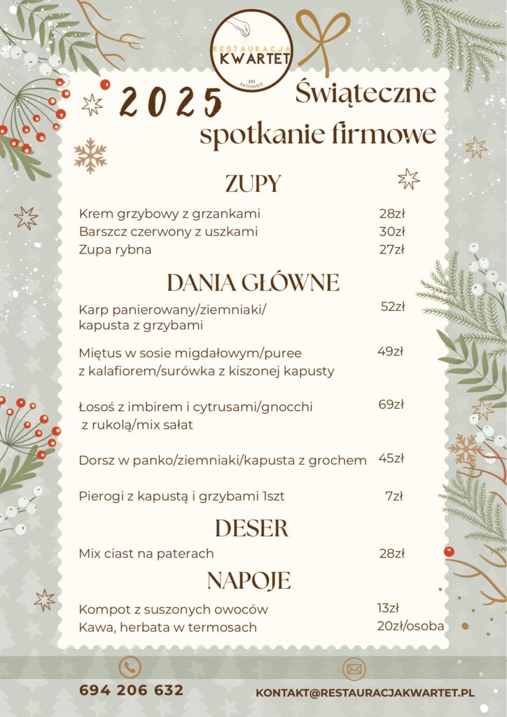 🎄 Czas na firmową Wigilię pełną smaku i świątecznego klimatu w Kwartecie! 🎁